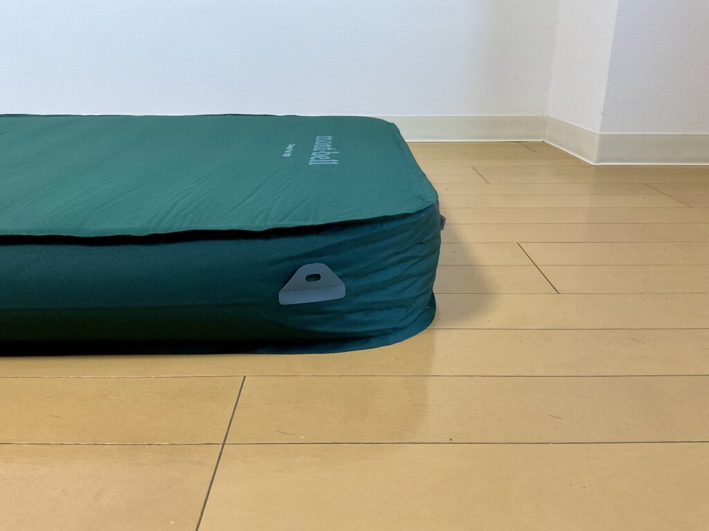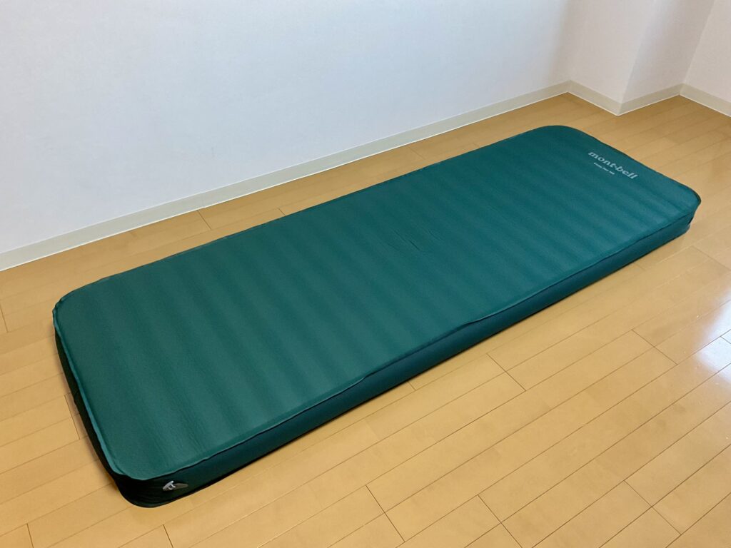 寝袋だけでフローリングの床に寝るのは流石に厳しいので、下には同じくモンベルのキャンプ用のパッド(マットレス)を敷いている。