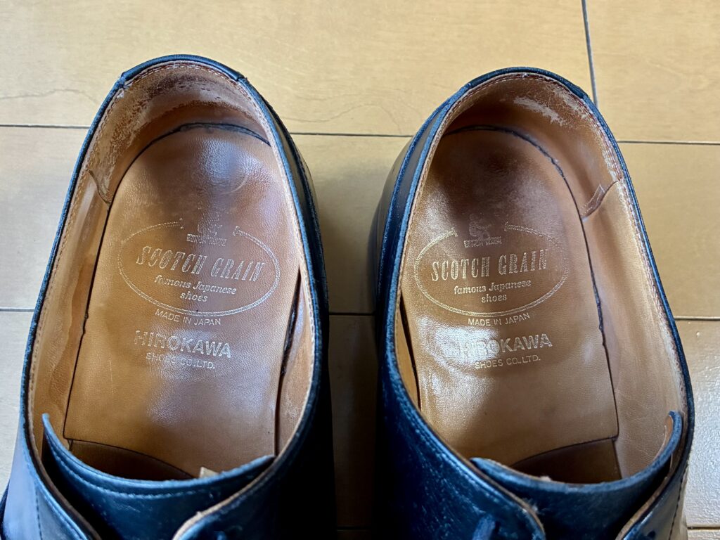 この2〜3年でかかと部分のすり減りやつま先部分の傷が気になるようになり、買い替えも検討したのだが、スコッチグレインの今のラインナップには外羽根のUチップがない。内羽根のストレートチップが主流だ。それほどかっちりしていない外羽根のUチップは、僕にとってはとても重宝する存在だ。それと、僕は他に2足のスコッチグレインの革靴を持っているのだが、その中でこのUチップの履き心地が一番僕に合っているのだ。これを手放すのはどうにも惜しい。