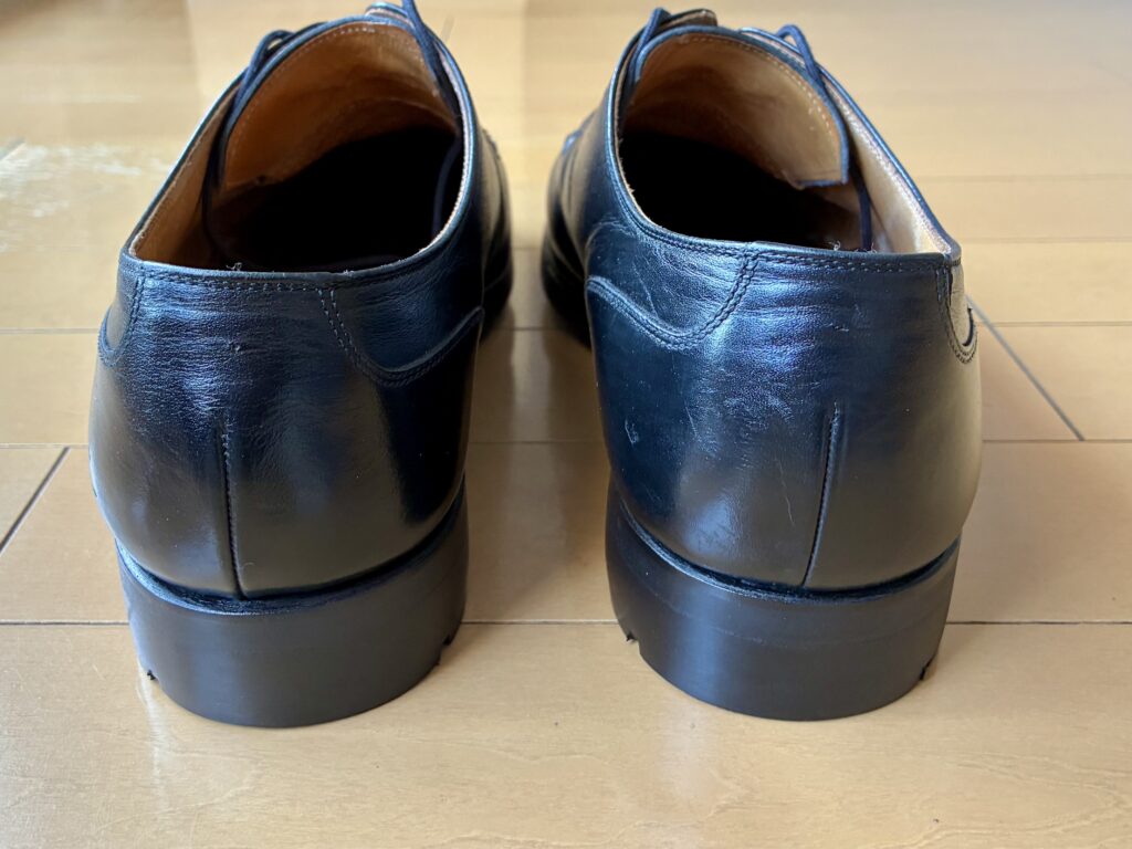 ↑修理後後ろ 踵部分の革の無数の傷もすっかりキレイに修復してくれた。